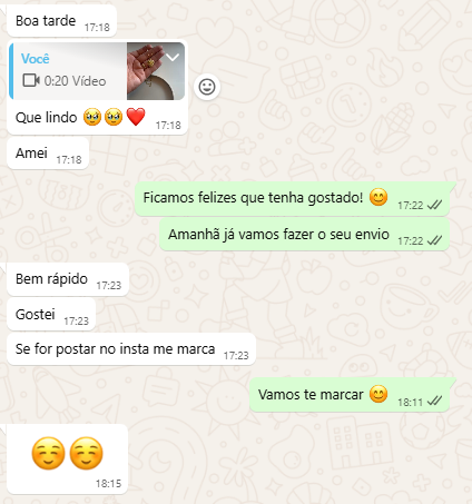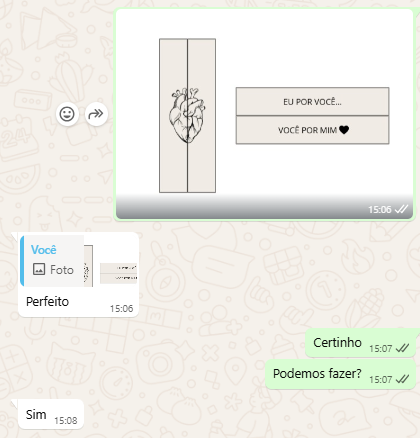 Após a confirmação do seu pedido, entraremos em contato com você pelo WhatsApp para receber todos os detalhes da personalização da peça.